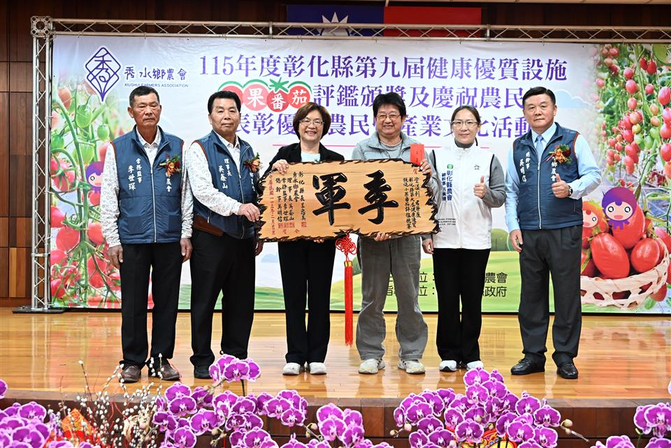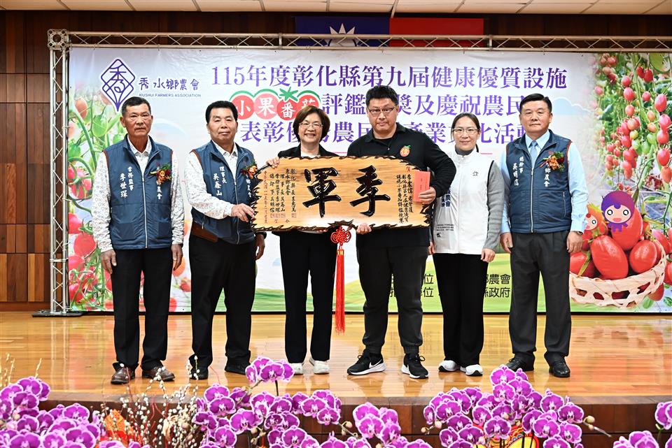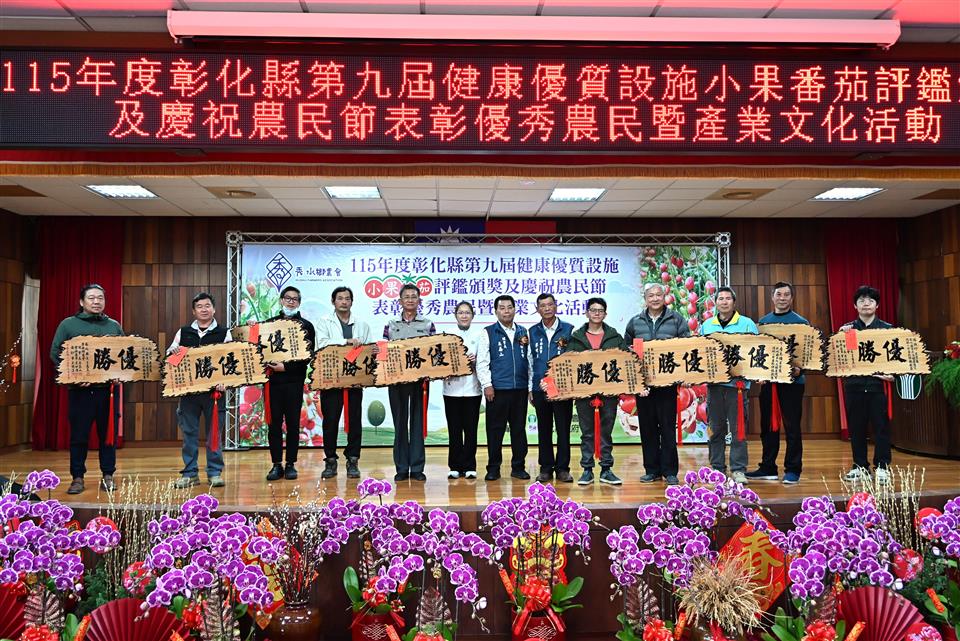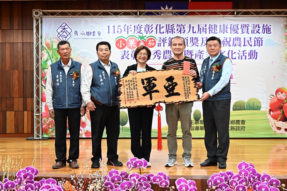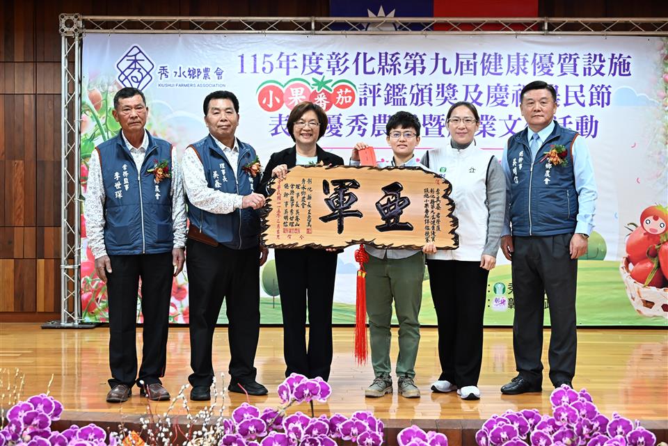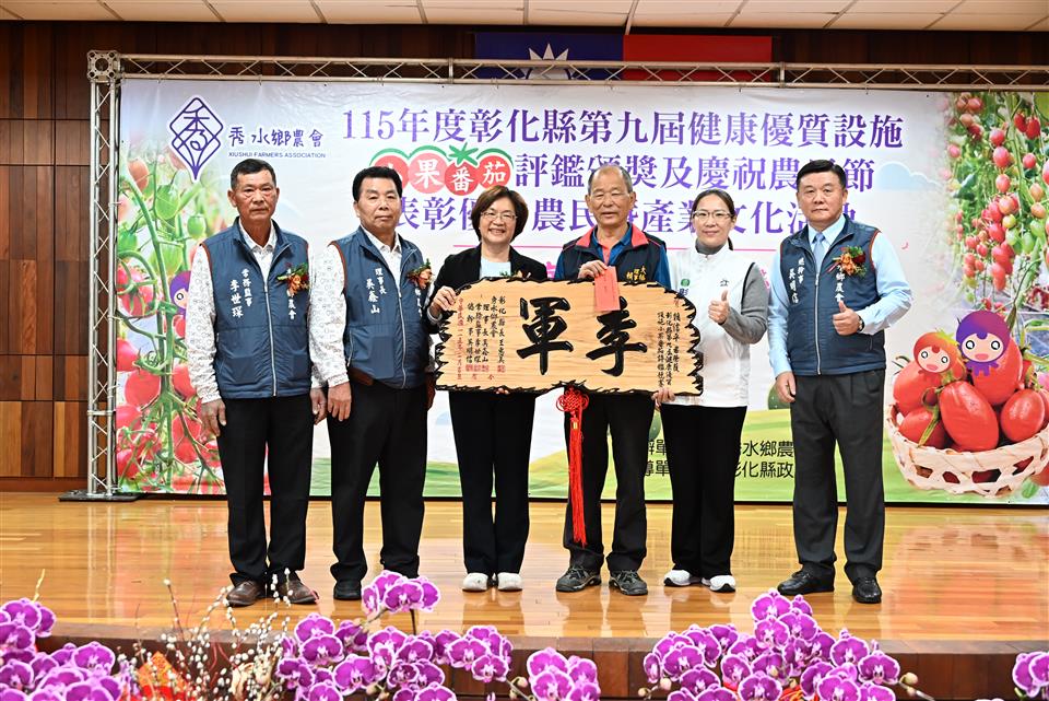新聞焦點 秀水鄉農會舉辦小果番茄評鑑頒獎並表彰優秀農民 推廣地方農業文化 發布日期 2026/02/03~2026/03/03 | 發佈單位: 農業處 | 發佈日期: 黃科長 7531651 | 更新日期 2026/02/03 | 瀏覽人數: 10人 秀水鄉農會於今(3)日舉辦「115年度彰化縣第九屆健康優質設施小果番茄評鑑」頒獎典禮,同時慶祝農民節,表揚優秀農民及推廣產業文化,彰化縣長王惠美、秀水鄉農會理事長吳鑫山、常務監事李世琛及總幹事吳明信等人與會。王縣長表示,感謝農友用心栽種,讓彰化的小果番茄在市場上深受喜愛,也要恭喜27名獲得表揚的優秀農民,都是農業界的菁英與榜樣,在農業上的貢獻值得大家推崇與肯定。為協助農民,縣府規劃智慧農業補助與青農學堂,透過最新科技與農機具,讓農民耕作時更加便利,同時吸引更多青年返鄉。 王縣長表示,由縣府委託秀水鄉農會辦理的小果番茄評鑑,今年邁入第9年,透過競賽交流與精進課程,農民的種植技術及番茄品質皆顯著提升,今年秀水鄉農民表現特別出色,一舉包辦冠、亞軍獎項,以及團體賽冠軍。在全縣 55 位頂尖農友的競爭中脫穎而出,獲選為最終的 16 位得獎者,極為不易,恭喜所有獲獎的團隊與農民。秀水鄉農會在理事長吳鑫山、常務監事李世琛及總幹事吳明信的帶領下經營良好,信用部表現更是全縣數一數二,截至去年底存款已達138億元、放款109億元,穩健獲利也成為推動農業發展的強大後盾。 王縣長指出,2026彰化月影燈季已在八卦山精彩登場!今年「馬年」特別以「跳跳馬戲團」為主題,現場有可愛的燈飾,還有精彩燈光秀,是全家出遊感受幸福氣氛的最佳去處。此外,全台走春首選「2026花在彰化-花城時旅」將於2月 17日至3月1日在溪州公園盛大舉行,適逢活動20周年,特別策劃一場跨越20年的春日時光旅程,現場匯集主題花展、多元表演、特色市集、多肉溫室、食農教育與動物認養,更有互動投影區讓民眾能提前下載繪畫稿件完成創作,帶到展館後投影展示,誠摯邀請大家春節來彰化白天賞花、夜間賞燈。 秀水鄉農會理事長吳鑫山表示,小果番茄評鑑頒獎已經第9屆,今年鄉內農友更是囊括冠、亞軍,並勇奪團體獎冠軍,未來將朝向精緻農業發展。現在越來越多年輕人投入農業,農民年齡層正在改變,鄉親對農業的未來也越來越有信心。 秀水鄉農會總幹事吳明信表示,秀水鄉農會近年透過辦理彰化縣小果番茄評鑑競賽,協助提升小果番茄品質,價格也水漲船高,讓農民獲利提升,成功吸引更多青農返鄉務農,為地方農業注入新活力。 冠軍得主梁愛卿表示,自己運氣很好,堅持努力從農已經二十幾年,能獲獎是對自己的肯定,很感謝農會用心輔導,幫忙解決生產上的問題。 農業處表示,縣府長期重視並推動「一鄉鎮一特色」,協助各鄉鎮發展特質,展現地方風華。秀水鄉推廣小果番茄有成正是地方特色的盡情展現,縣府將持續與地方攜手合作,共同迎來屬於各鄉鎮的榮耀時刻。 與會貴賓有議員凃淑媚、秀水鄉民代表會副主席鄭倫杰、彰化縣農會總幹事呂佩臻、秀水鄉農會理事長吳鑫山、常務監事李世琛、總幹事吳明信、彰化縣工商發展投資策進會總幹事洪榮章、縣府參議柯呈枋、農業處副處長蕭麗玲、各級民意代表及地方仕紳等。 農民節表揚活動獎項如下: 協助農業推廣教育18名、優良農事小組長4名、協助畜牧產銷業務有功人員1名、協助推廣飼料有功人員1名、協助農事推廣有功人員1名、協助四健業務有功人員1名、協助家政推廣有功人員1名、以上受獎人員共27名 第九屆健康優質設施小果番茄評鑑得獎名次如下: 個人獎 冠軍:秀水鄉農會梁愛卿 亞軍:埔鹽鄉農會莊政榮、秀水鄉農會李其晏 季軍:二林鎮農會李震偉、大村鄉農會賴信平、北斗鎮農會𡍼溢利 優勝 永靖鄉農會謝信賢、和美鎮農會陳台鎮、大城鄉農會林承翰、大城鄉農會王俊傑、田中鎮農會蔡崇德、秀水鄉農會昌益荃、秀水鄉農會林進直、秀水鄉農會詹志強、北斗鎮農會黃俊超、二林鎮農會楊淑珍 團體獎 冠軍:秀水鄉農會 亞軍:二林鎮農會、埔鹽鄉農會 季軍:大城鄉農會、北斗鎮農會、永靖鄉農會 優勝:田中鎮農會、花壇鄉農會、溪州鄉農會、田尾鄉農會、溪湖鎮農會、竹塘鄉農會、大村鄉農會、埔心鄉農會、和美鎮農會