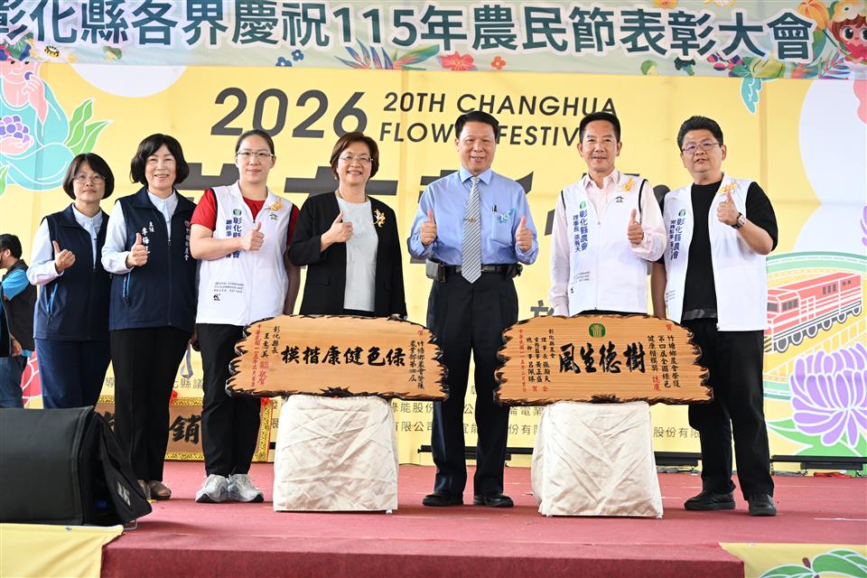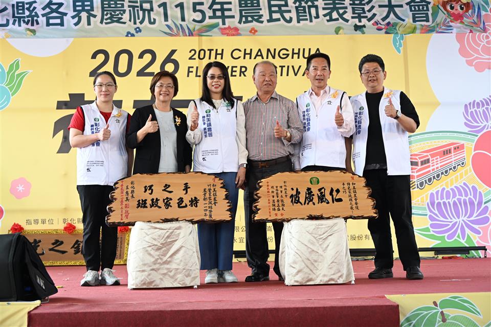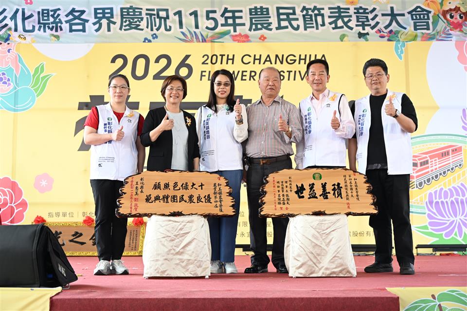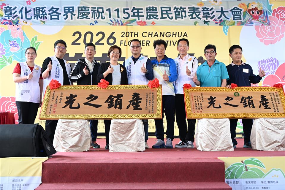 新聞焦點 彰化縣盛大慶祝農民節 表彰績優農民團體及100位優秀農民 發布日期 2026/02/26~2026/03/26 | 發佈單位: 農業處 | 發佈日期: 黃科長 7531651 | 更新日期 2026/02/26 | 瀏覽人數: 9人 《置頂》 彰化縣各界慶祝115年農民節表彰大會,於今(26)日上午在溪州公園熱鬧登場,彰化縣長王惠美、彰化縣農會理事長張瀚天、常務監事黃正盛、總幹事呂佩臻等人與會。公開表揚長期深耕農業、對地方發展有卓越貢獻的農民團體與從業人員。本次表揚包含全國優良農業產銷班、十大綠色照顧優良典範、特色家政班及優秀從業人員,展現彰化農業兼顧生產、照顧與永續發展的堅強實力。 王縣長表示,本次獲獎名單包括「114年全國優良農業產銷班」田尾鄉花卉產銷班第31班;「農業部第四屆十大綠色照顧優良典範」共5個農會及區漁會;「114年特色家政班」共6個農會家政班,以及100位優秀農業從業人員。其中,彰化縣於「十大綠色照顧優良農民團體典範」獲獎數榮獲全國第1,「特色家政班」獲獎數名列全國第2,展現本縣推動農村高齡照顧服務與農村婦女參與的具體成果。一年之計在於春,現在是春耕也是農民開始忙碌的季節,感謝鄉親辛勤耕耘,引領彰化農業發光發熱。 立委謝衣鳯表示,感謝所有農會長期以來的努力,共同促進農業發展,也恭喜接受表揚的農業團體與農民朋友。勤奮耕耘的農民朋友都是秉持對土地的熱愛,讓彰化農業持續成長,也讓我們的家園更加幸福。 彰化縣農會理事長張瀚天表示,今天是屬於全體農民的日子,彰化在農業產業提升與農村文化推廣上表現優異,許多獎項都表現亮眼。期許未來大家在農業發展與農村服務等領域持續精進,開創更美好的農業新氣象。 農業處表示,面對農村人口老化與勞動力不足等挑戰,縣府從生活照顧、育兒支持、青年返鄉及智慧農業等面向持續推動相關政策。高齡照顧方面,縣內社區關懷據點自上任以來,已由150多個成長至374個,協助農村長輩在地安養。在育兒與青年支持方面,縣府積極推動公設民營托嬰中心與非營利幼兒園,首創「好孕卡」與「童萌卡」,減輕農村家庭育兒負擔;同時提供最高30萬元的青年創業補助,設置青創基地,協助青年創業。此外,縣府亦建構全國首創「老幼共融(0至100歲)」長照衛福大樓,目前已推動18案,全力打造全齡友善的農村環境。 為因應農業勞動力不足問題,縣府積極導入科技應用,設立智慧農業標準示範場域,推動智慧農業設施補助計畫,單案最高補助30萬元。針對具特殊性或符合條件之農產業,可專案辦理,補助金額最高可達100萬元,協助農友提升生產效率與競爭力。縣府未來將持續與各級農會及農友攜手合作,推動農業創新、智慧轉型與農村永續,實現永續宜居的「美好彰化 希望城市」。 與會貴賓還有立法委員謝衣鳯、彰化縣議員李俊諭、溪州鄉鄉長江淑芬、農糧署中區分署秘書張文美、台中區農業改良場秘書白桂芳、彰化縣農會理事長張瀚天、常務監事黃正盛、總幹事呂佩臻、全國農業金庫經理趙麗明、農業處長郭至善、副處長蕭麗玲、彰化縣肉品市場總經理陳國興、彰化區漁會總幹事陳威谷、大城鄉農會理事長蔡隱居、二林鎮農會理事長陳界灯、和美鎮農會理事長郭德勝、總幹事謝燕如、二水鄉農會總幹事羅崴騰、線西鄉農會總幹事王嘉琪、鹿港鎮農會總幹事張恒源、田尾鄉農會總幹事吳政憲、社頭鄉農會總幹事蕭良珍、田中鎮農會總幹事張瑞欣、二林鎮農會總幹事邱士平、埔心鄉農會總幹事徐彩瑜、埤頭鄉農會總幹事王宋民、竹塘鄉農會總幹事詹光信、北斗鎮農會總幹事陳瑩昇、溪州鄉農會總幹事彭顯賦、彰化市農會總幹事白閔傑、福興鄉農會總幹事林坤宏、員林市農會總幹事黃豐盛、大村鄉農會總幹事廖瑞樺、芳苑鄉農會總幹事洪翊桓、秀水鄉農會總幹事吳明信、溪湖鎮農會總幹事陳金源、花壇鄉農會總幹事顧碧琪、彰化縣青農聯誼會總會長孫崇鈞、各級民意代表及地方仕紳等人。