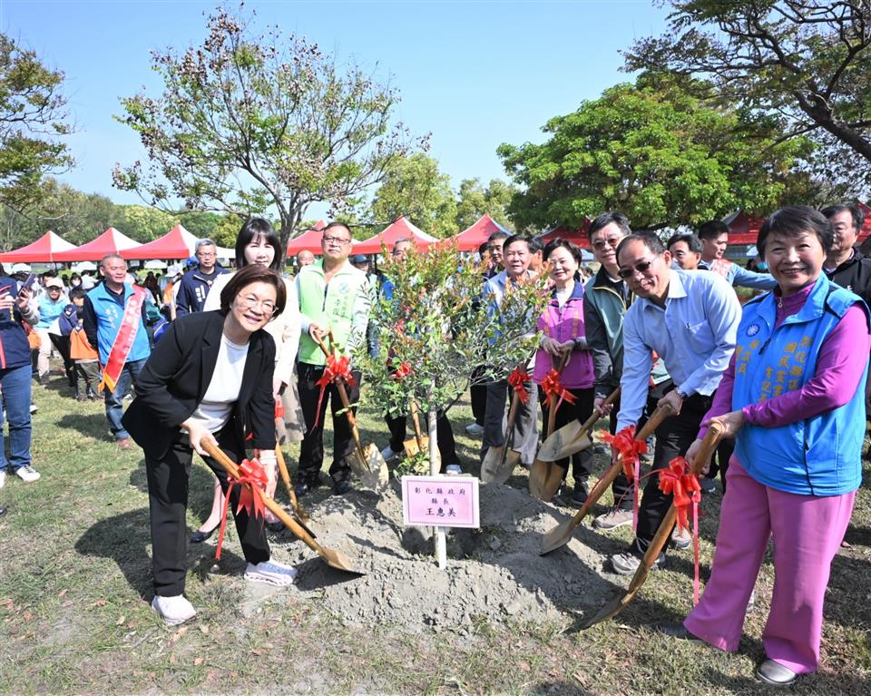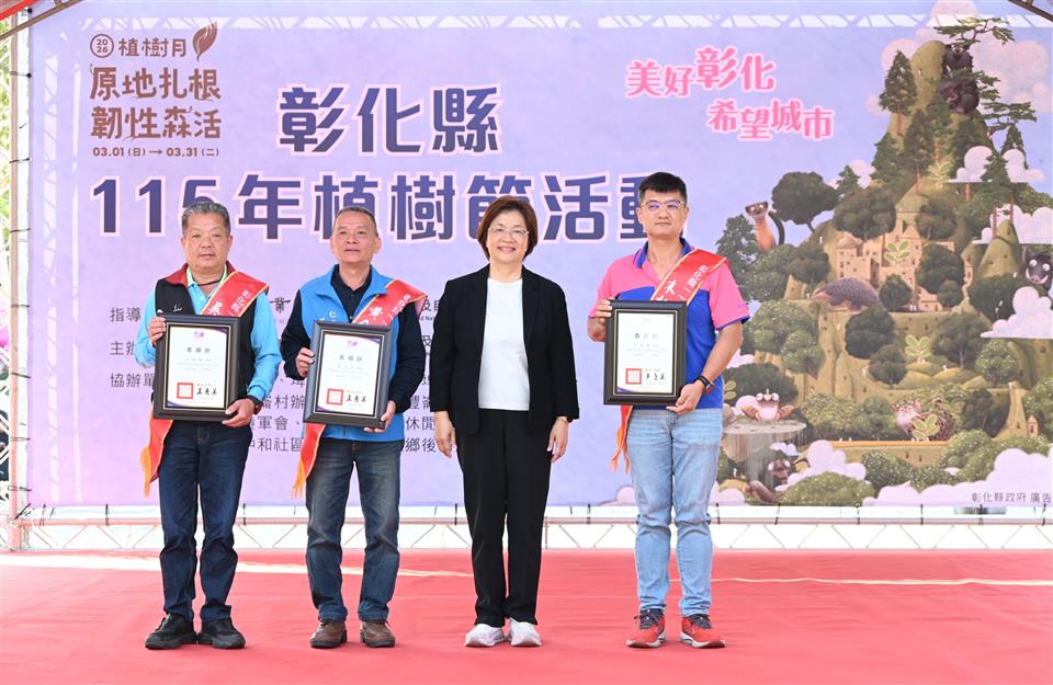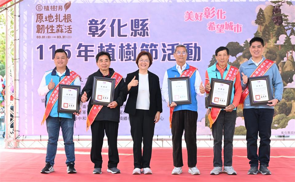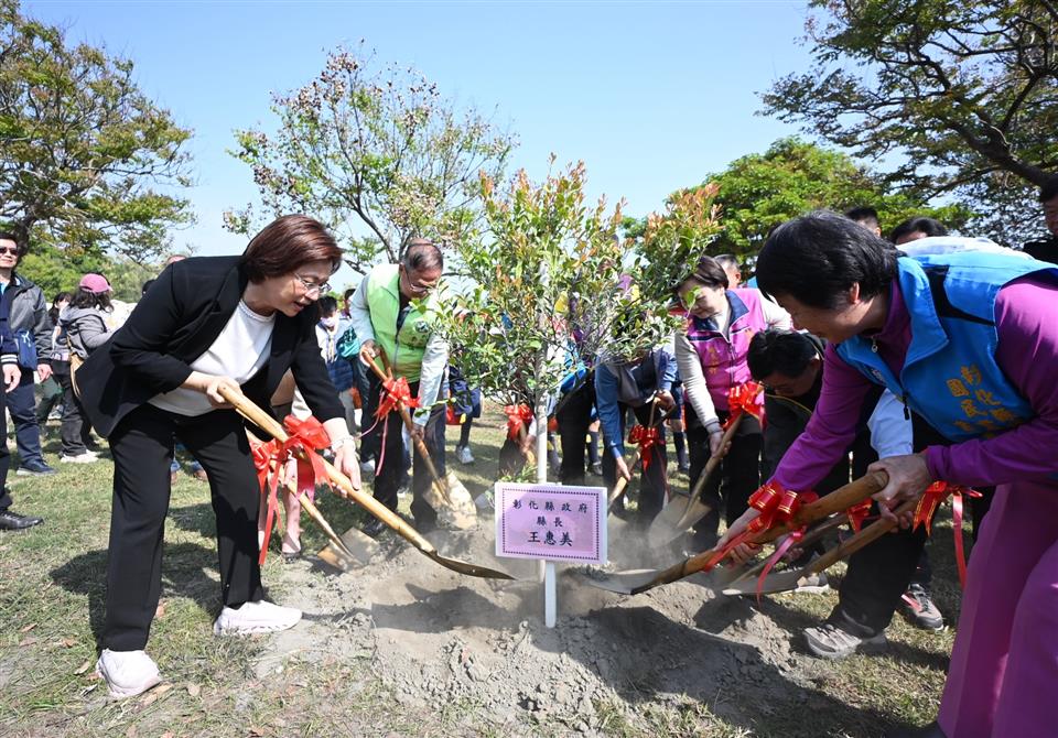 新聞焦點 3年提供30萬株苗木 為土地種下希望 彰化縣植樹節織生態綠網 發布日期 2026/03/15~2026/04/15 | 發佈單位: 農業處 | 發佈日期: 林務暨野生動物保護科蘇科長 7531611 | 更新日期 2026/03/15 | 瀏覽人數: 47人 《置頂》 為推廣環境綠美化,彰化縣政府、農業部林業及自然保育署南投分署、埤頭鄉公所、埤頭鄉民代表會及埤頭鄉農會,於今(15)日在埤頭鄉豐崙公園共同辦理「彰化縣115年植樹活動-原地扎根•韌性森活」活動,現場有來自社區、學校、企業等各界夥伴,親手將樹苗扎根鄉土,展現面對環境變遷的自信與韌性。 王縣長表示,植樹不僅是種樹,更是為土地播下希望的種子。今天我們攜手種下厚葉石斑木、山芙蓉、椬梧、水黃皮、珊瑚樹、白水木、象牙木等7種本地原生樹種,代表對土地的承諾。近年來縣府已提供逾30萬株樹苗,給鄉鎮市公所、學校及機關團體,期盼為彰化種下蓊鬱如蔭的未來。 王縣長指出,活動現場設置政令宣導攤位及手作植栽DIY,並提供金毛杜鵑、蘭嶼羅漢松、厚葉石斑木、七里香等原生樹苗各500株,共2,000株,開放民眾現場領取。同時表揚114年度本縣綠美化有功人士及團體,感謝盡心盡力為社區綠美化而努力。希望透過植樹活動,引領民眾更關懷這片孕育我們的土地。 農業部林業及自然保育署副署長廖一光表示,春暖花開是適合種樹的季節。由於氣候變遷,碳排放量越來越多,種樹可以改變微氣候並固碳,這也是逐漸受到重視的「碳匯」。今天在埤頭種樹,將附近生態串連,作為生態保育的重要基礎。 立委謝衣鳯表示,期盼大家共同達成永續發展及減碳目標,並將碳匯作為工具引導大眾朝向節能減碳邁進。 埤頭鄉長杜懿彩表示,豐崙公園是埤頭腹地最大的公園,緊鄰社區活動中心。植樹節讓公園種植更多樹木,也能吸引更多民眾來這邊休憩。 農業處表示,本次植樹節活動象徵對土地的深耕與承諾,展現面對環境挑戰時的適應力與包容力,以期土地自我修復並持續茁壯。每年3、4月間,縣府與各鄉鎮市公所合作辦理植樹活動,由縣府提供苗木給各鄉鎮市公所辦理苗木贈送活動,促進民眾對植樹綠化的參與。縣府近3年共計配撥機關團體及學校苗木達30餘萬株,完成400餘個村里社區綠美化,各村里社區如有環境綠美化-苗木提供之申請需求,可至縣府農業處網站下載相關資料及申請書提出申請。 與會貴賓有立委謝衣鳯、農業部林業及自然保育署副署長廖一光、南投分署長李志珉、縣議員劉淑芳、李俊諭、吳錦潭、埤頭鄉鄉長杜懿彩、埤頭鄉農會理事長楊宏超、彰化縣童軍會總幹事陳榮茂、彰化縣工商發展投資策進會總幹事洪榮章、縣府農業處長郭至善、豐崙國小校長謝鴻達、田中國小校長陳泗正、大統幼兒園園長陳勉華、埤頭青農聯誼會長張義鑫、各校及社區代表、各級民代與地方仕紳等。